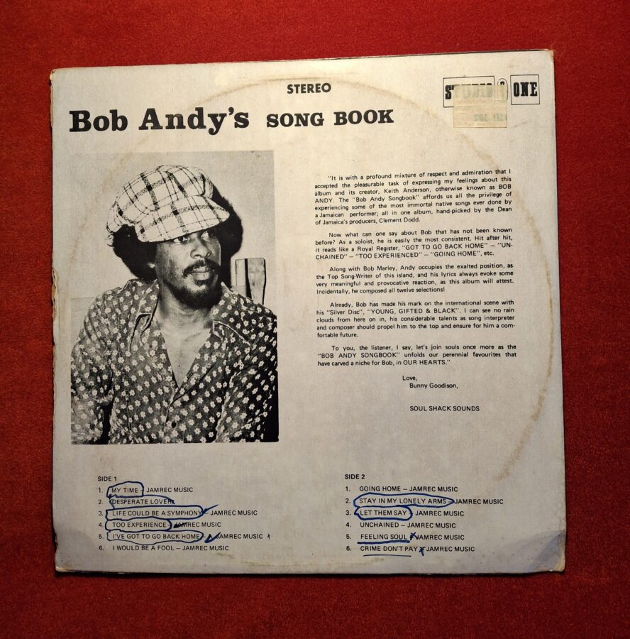 BOB ANDY – Song book – STUDIO 1